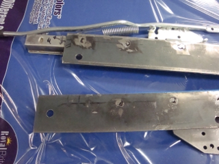 I added seat tracks to driver side - had to weld 1/8 x 2" base plate to align with chassis mounting plates which were positioned before I decided to add tracks. Pic shows plug or rosette welds to hold track to base plate. Fuel tank, pump and lines are next. ~George
