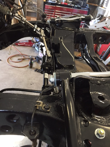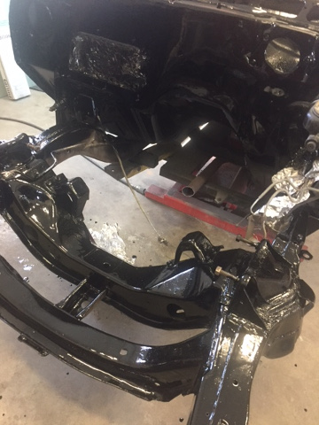 Engine bay all cleaned up and painted with new suspension parts installed.
