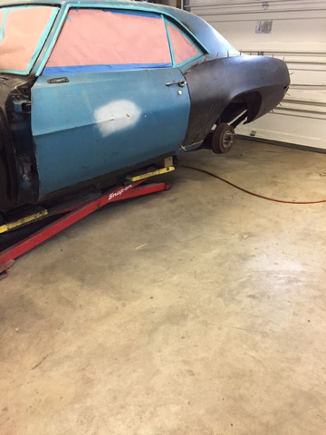 Body sheet metal was sanded/smoothed, primed, and a guide coats applied
